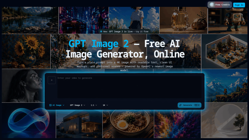 GPT Image 2 transforms text prompts into stunning 4K images, featuring highly accurate, readable text and photorealistic scenes. It offers advanced capabilities like multilingual rendering, custom dimensions, and image-to-image editing, making it ideal for product photography, ad creatives, concept art, and UI mockups. It leverages advanced AI models to ensure that text within images is perfectly rendered and legible, solving a common pain point in AI image generation.